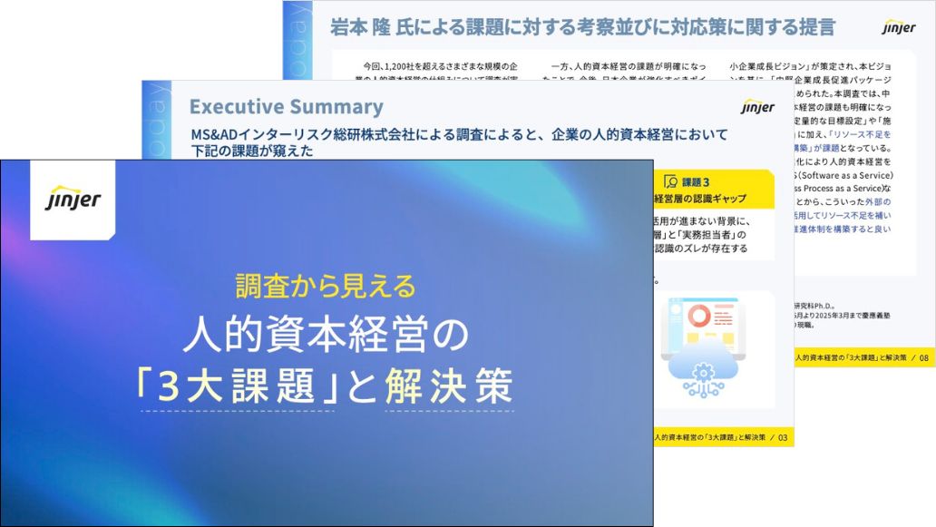 そこで今回、アンケート調査から見えてきた「人的資本経営の課題とその解決策」をまとめた資料を無料配布しています。