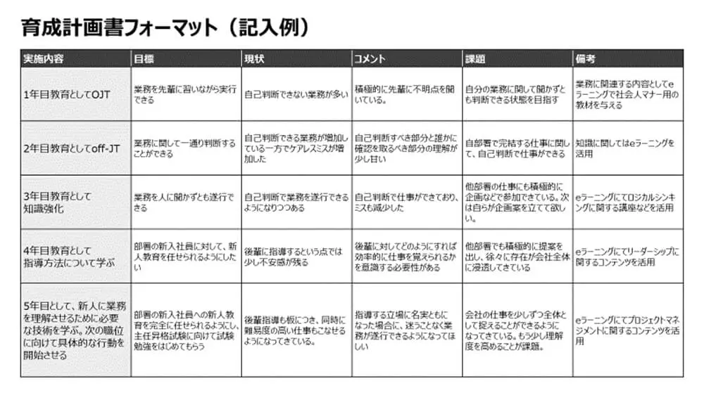 引用:人材育成計画書の作り方|階層別の目標設定例とフォーマット・テンプレ|AirCourse人材育成サポーター