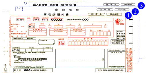 納入告知書は、1枚目「領収済通知書」、2枚目「領収控」、3枚目「納入告知書(納付書)・領収証書」の3枚つづりとなっています。