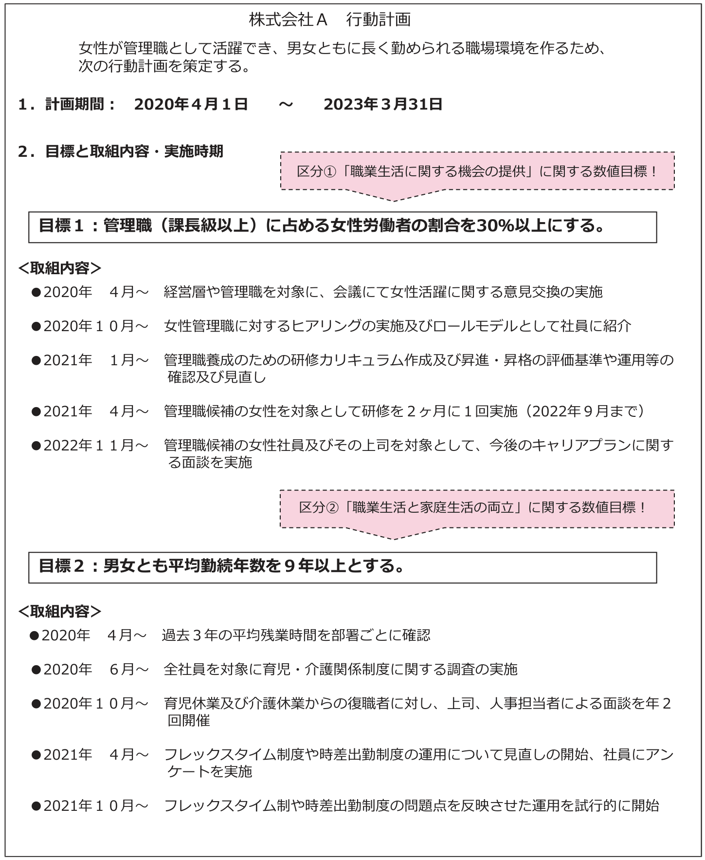 【一般事業主⾏動計画の策定例(常時雇用する労働者数が301人以上の事業主の場合)】