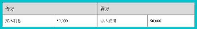 | 支払利息 | 50,000円 | 未払費用 | 50,000円 |