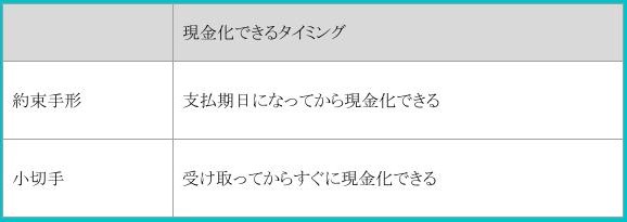 約束手形と小切手の違いは、受取人が小切手・手形を現金化できるタイミングです。それぞれの現金化タイミングは次のとおりです。