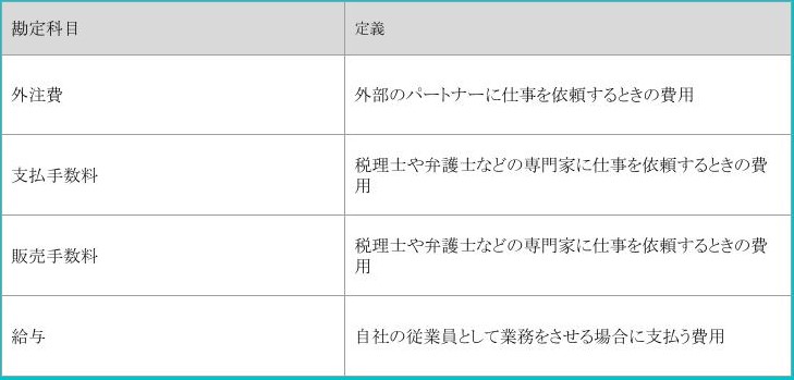 | 外注費 | 外部のパートナーに仕事を依頼するときの費用 |
