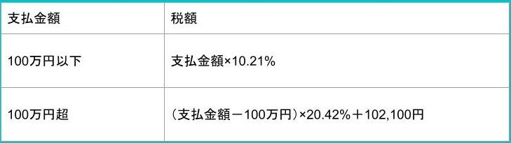| 100万円超 | (支払金額ー100万円)×20.42%+102,100円 |