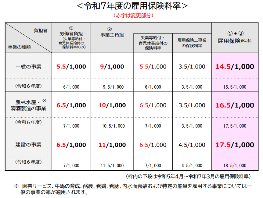 1-1. 令和7年(2025年)4月からは雇用保険料率引き下げ!