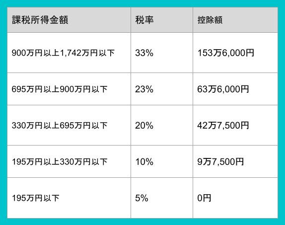 算出した課税所得に所得税率を乗算して、正確な所得税額を算出します。課税所得の金額ごとの所得税率は下記のとおりです。