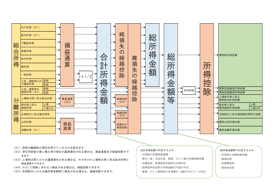 なお、利子所得や一時所得など、所得の種類によって計算方法が異なることもあるので注意が必要です。その後、損益通算などをしたうえで、各種所得を合算し、合計所得金額を計算します。