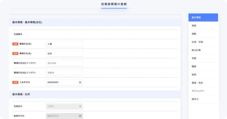 従業員情報を勤怠管理や給与計算に自動反映できるため、業務全体のスピードアップ・ミス防止につなげられます。