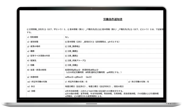 書類のテンプレートを自由に作成可能。各企業の型に合わせた書類を作成することができます。