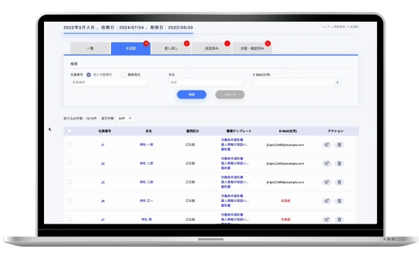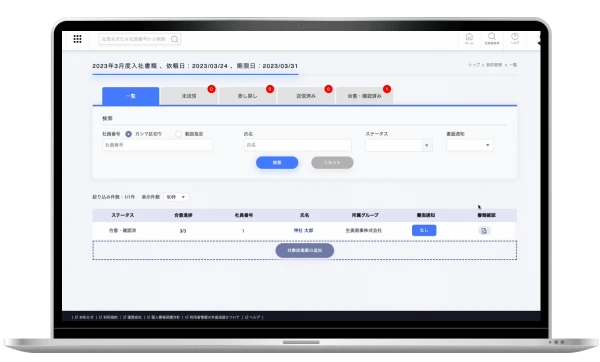 従業員ごとに必要な書類を、一括依頼・承認できます。