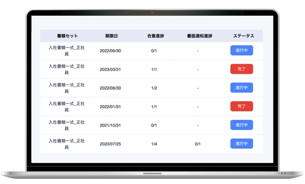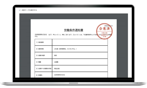従業員はWeb上で書類の確認や合意が可能。書面への押印や署名が不要です。