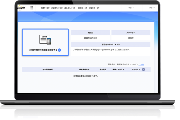・回収進捗の可視化 ・収集した年末調整書類の出力