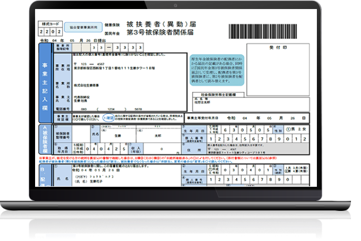 効率化社会保険や労働保険関係の帳票作成や電子申請を一括で行えます。複数拠点の手続きなど、大量申請の工数を削減することができます。