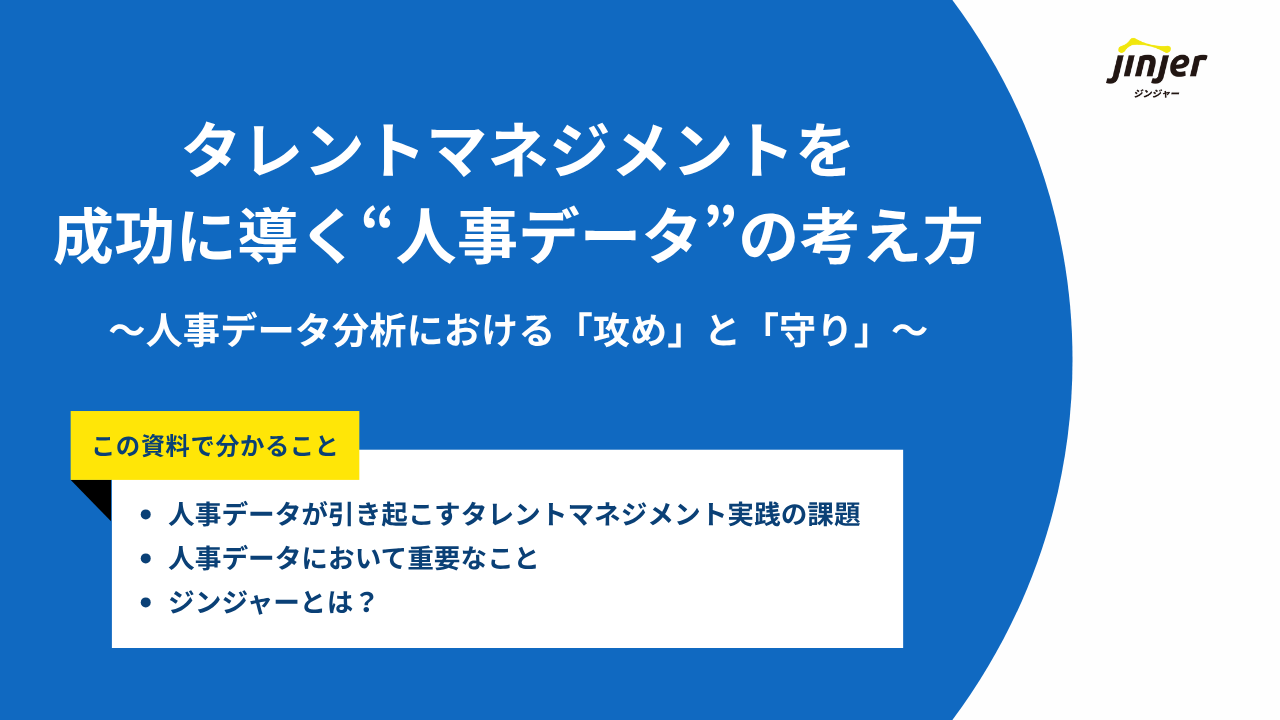 実は多くの企業が効果的に実践できていないタレントマネジメント。成功のカギは“人事データ”にあるとされています。本資料では、人事データが重要であるポイントを図を用いて解説します。