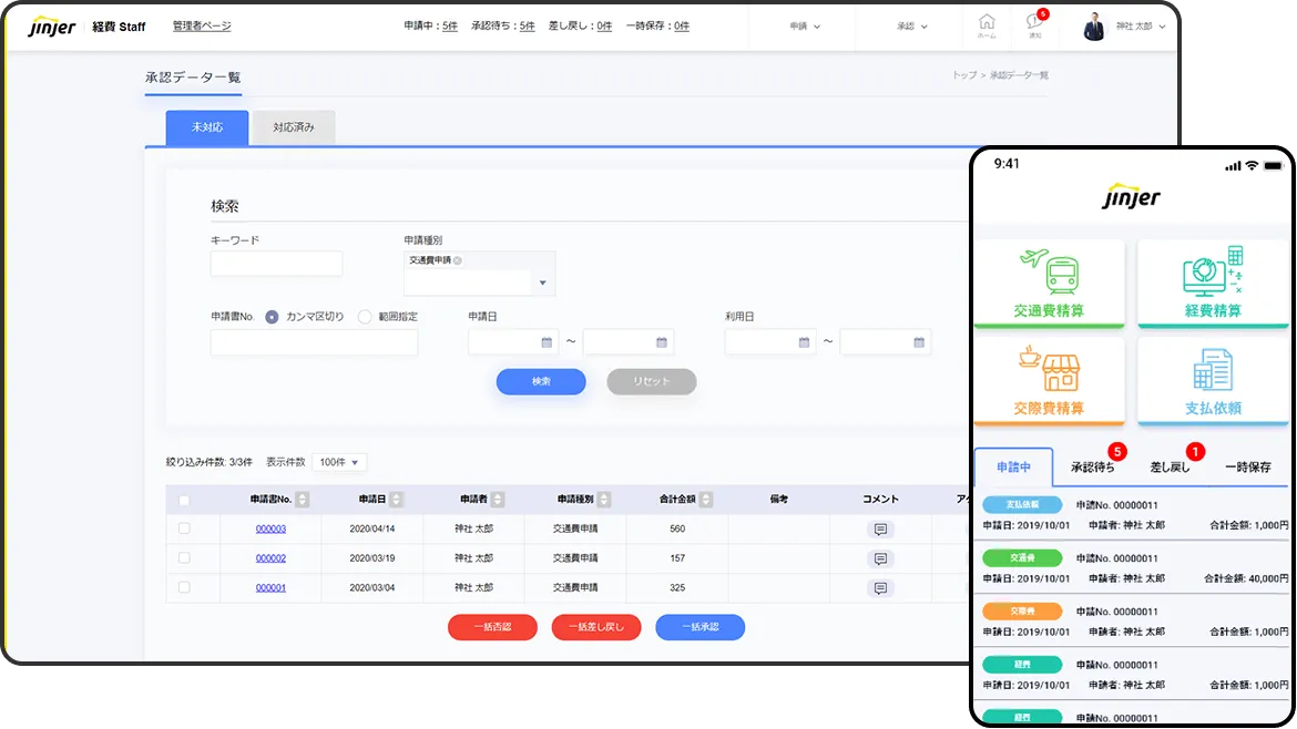 - 交通費、経費、交際費、出張費、支払依頼の申請・承認が可能です。