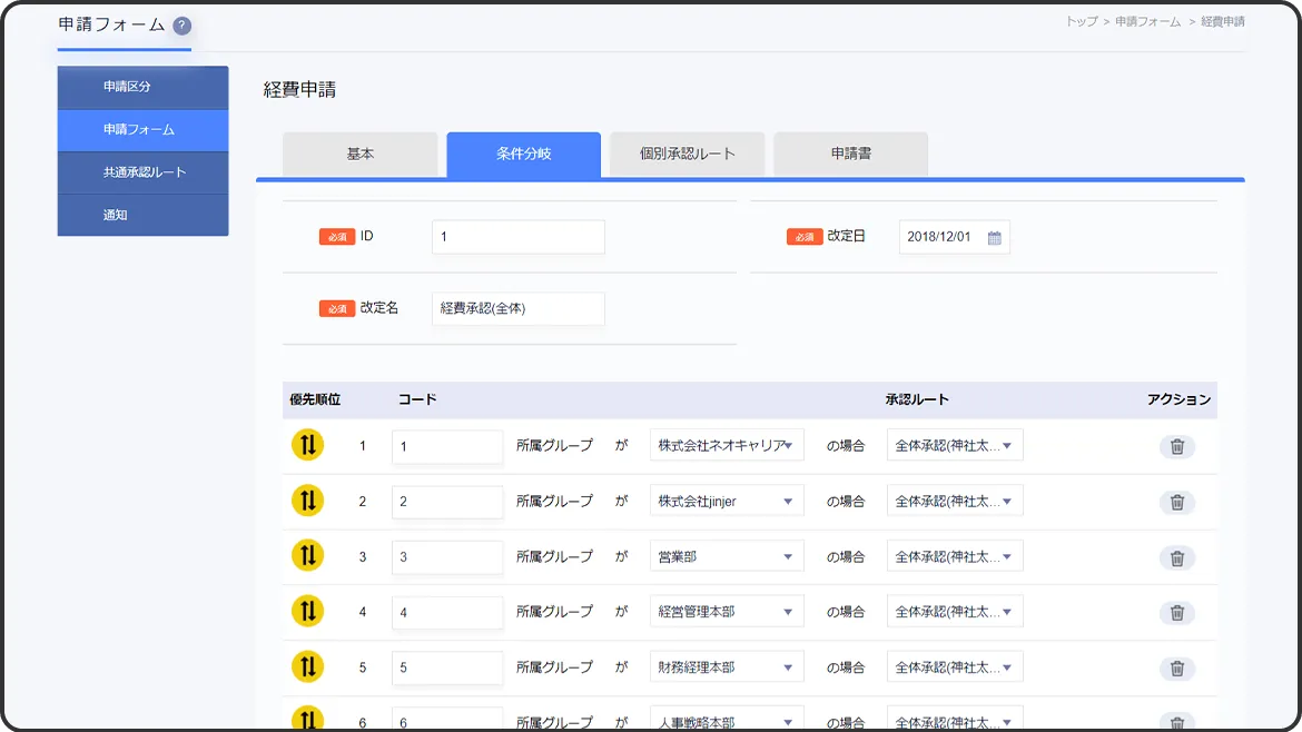 - 企業の運用方法に合わせて、申請に対する承認ルートの設定が所属グループや個人単位で可能です。 承認ルートの間違いをゼロにし、申請者、承認者、経理担当者のストレスをなくします。