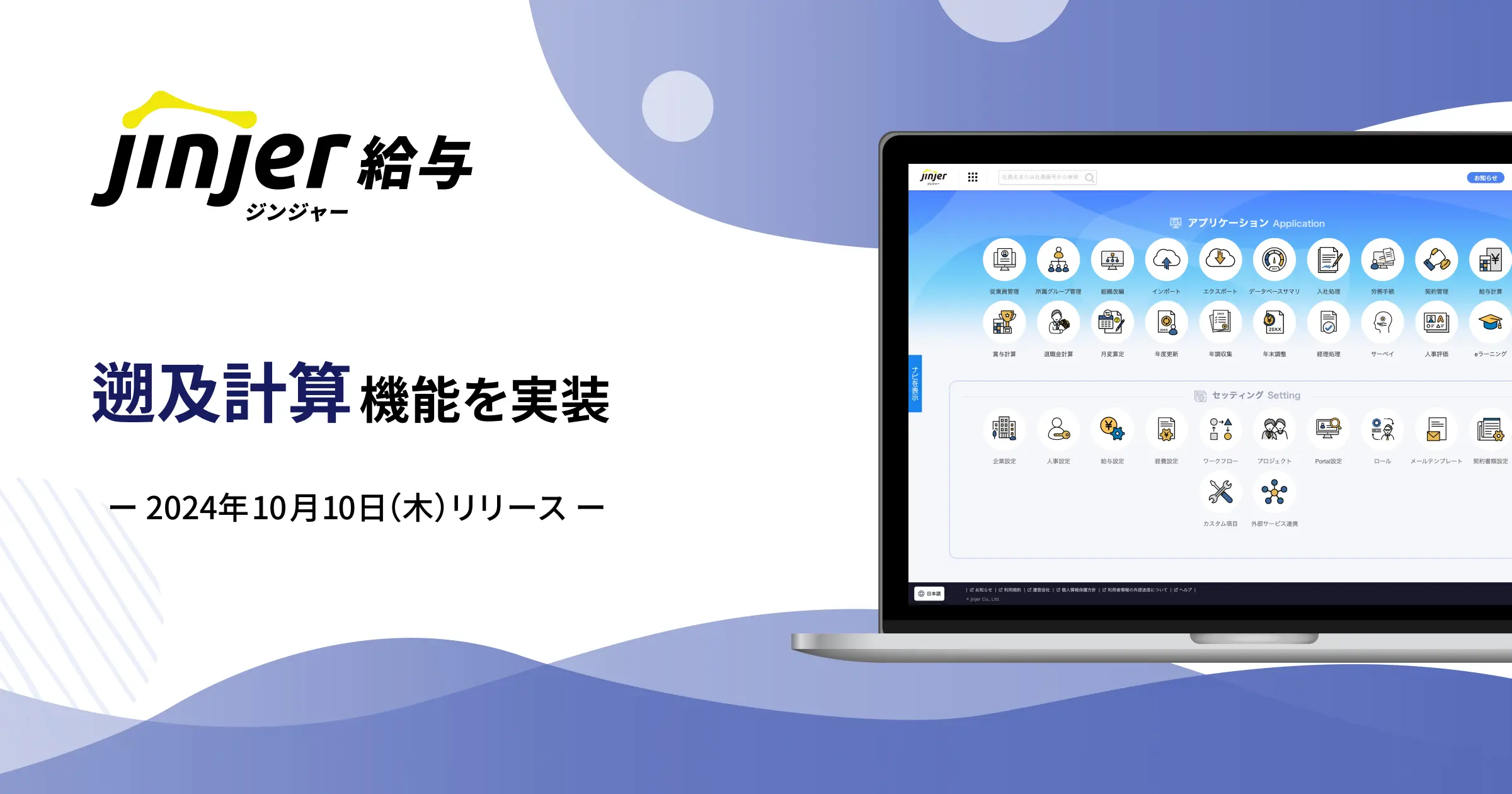 • クラウド型人事労務システム「ジンジャー」を提供しているjinjer株式会社(本社:東京都新宿区、代表取締役社長:桑内 孝志)は、「ジンジャー給与」に、遡及差額計算に関する機能を実装したことをお知らせします。