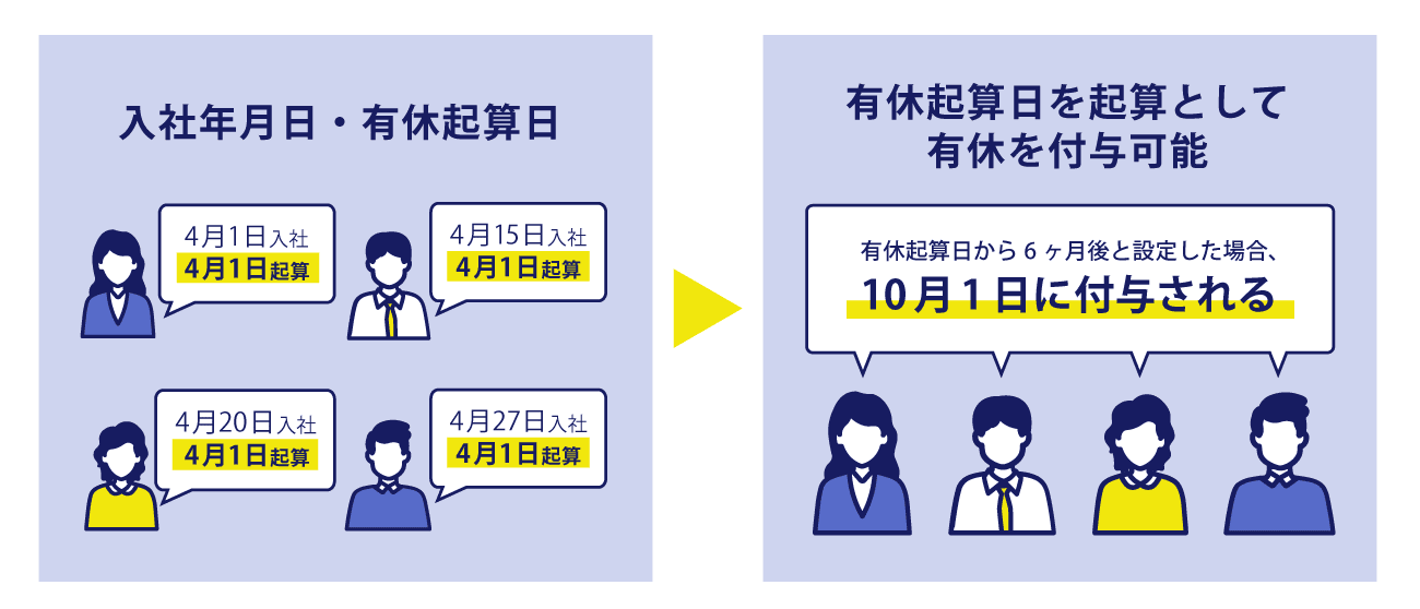 ▶入社年月日が異なる場合でも統一の有休起算日を設定可能
