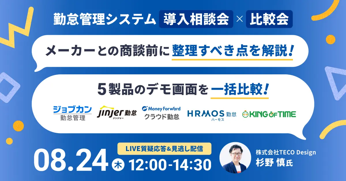 【5製品を一挙に比較!】 勤怠システム導入相談会×比較会を実施します