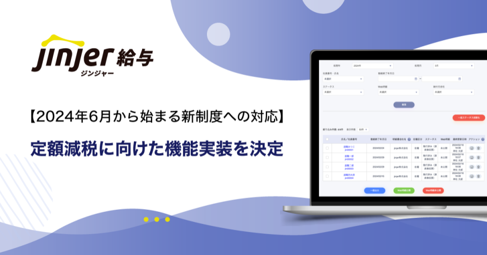 【2024年6月から始まる新制度への対応】ジンジャー給与にて、定額減税に向けた機能実装を決定