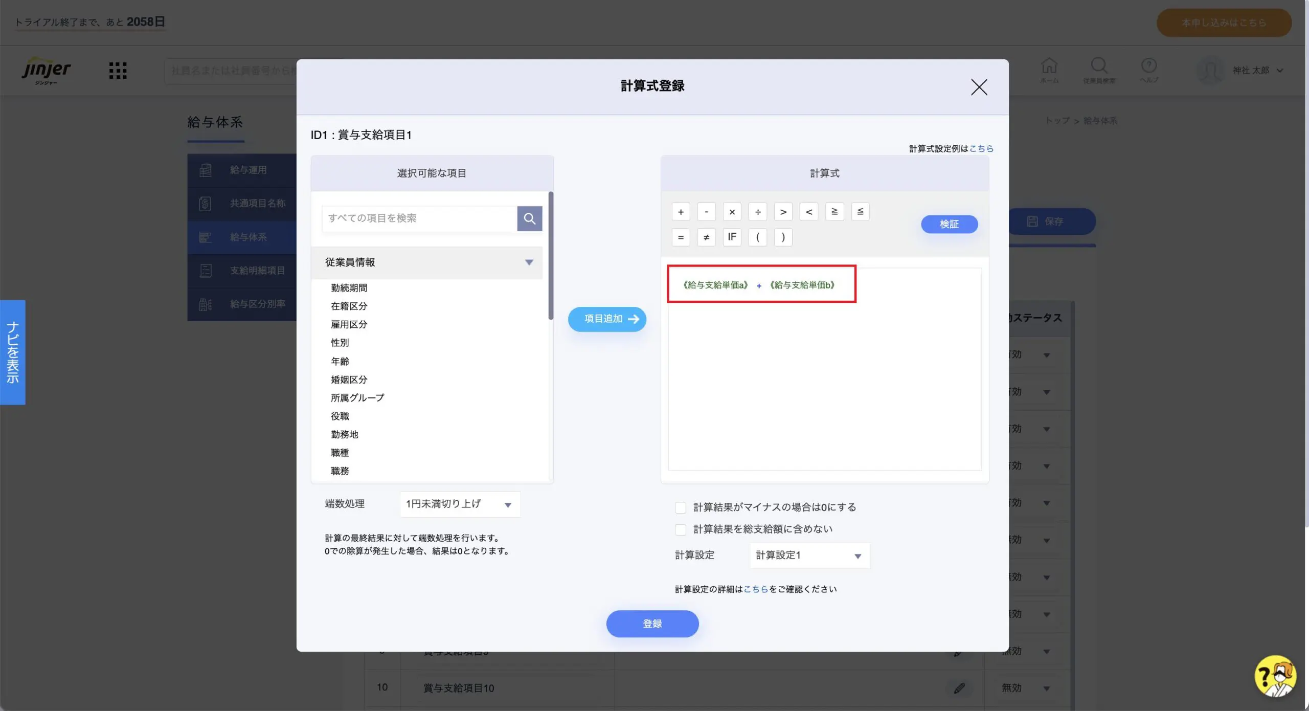 これまでの賞与計算機能は、管理者側で入力・インポートした支給金額を元に所得税、社会保険料を計算できましたが、新機能では、支給金額・控除金額の計算式を組むことができる機能を実装し、人事データベースに登録している従業員情報や給与の支給単価等のデータを用いて賞与計算の対応が可能となりました。