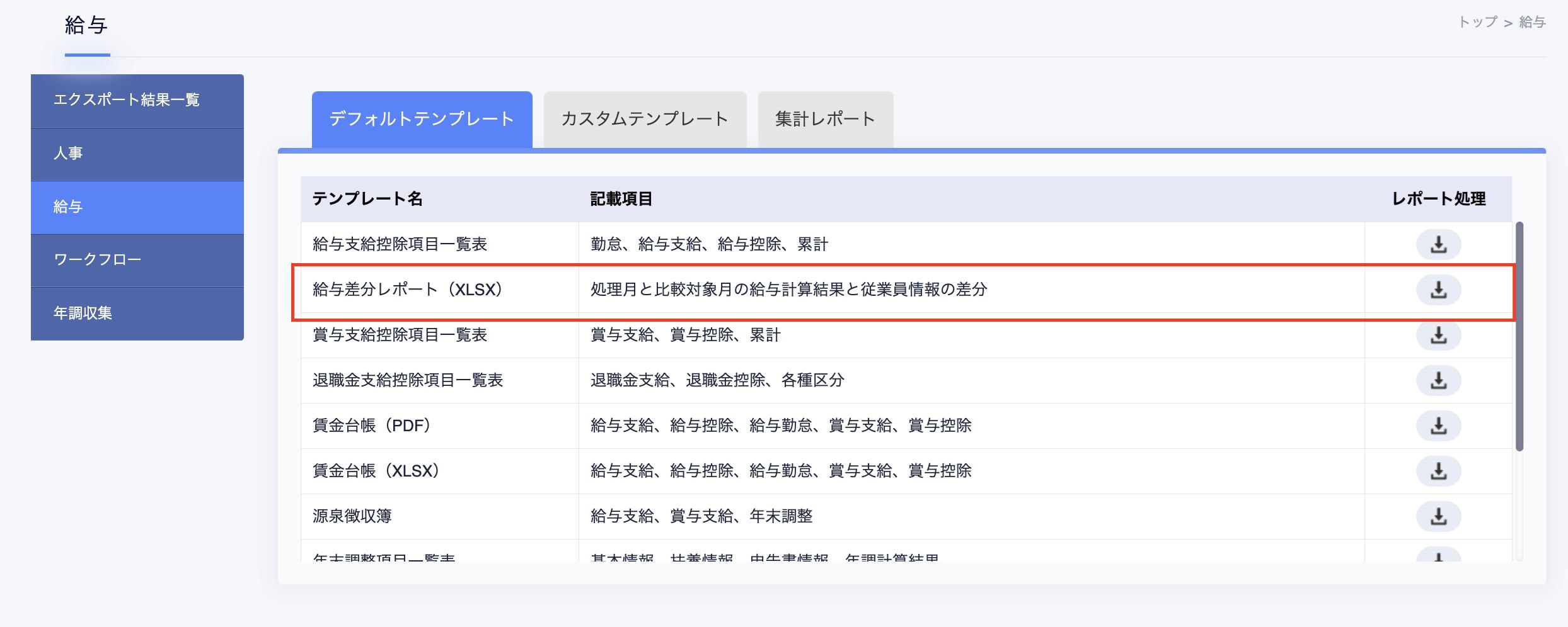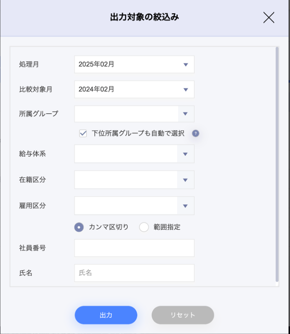 ※給与計算を行う月から、最大「前12ヶ月(前年同月比)まで」の差分レポートが出力可能です。