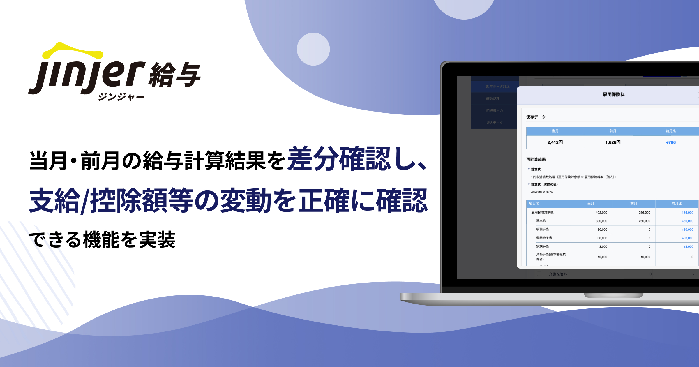 クラウド型人事労務システム「ジンジャー」を提供しているjinjer株式会社(本社:東京都新宿区、代表取締役社長:桑内 孝志)は、「ジンジャー給与」で、当月の給与計算結果を、前月分の結果と差分確認し、支給/控除額等の変動を正確に確認できる機能を実装したことをお知らせします。