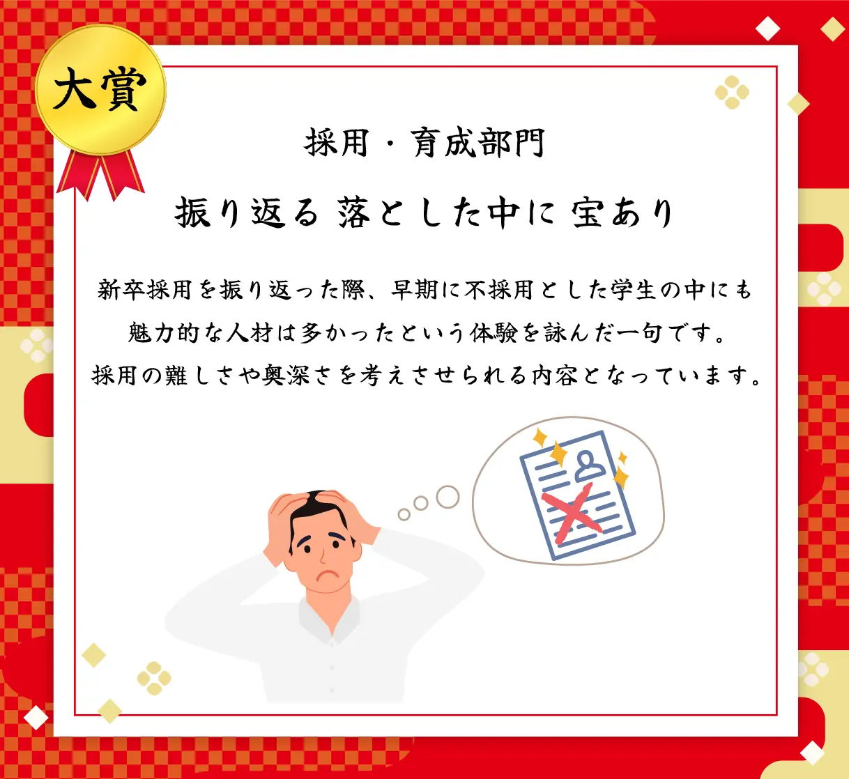 企業の成長を支える「人材の獲得」と「育成」にまつわる喜びや苦労を詠んだ部門です。