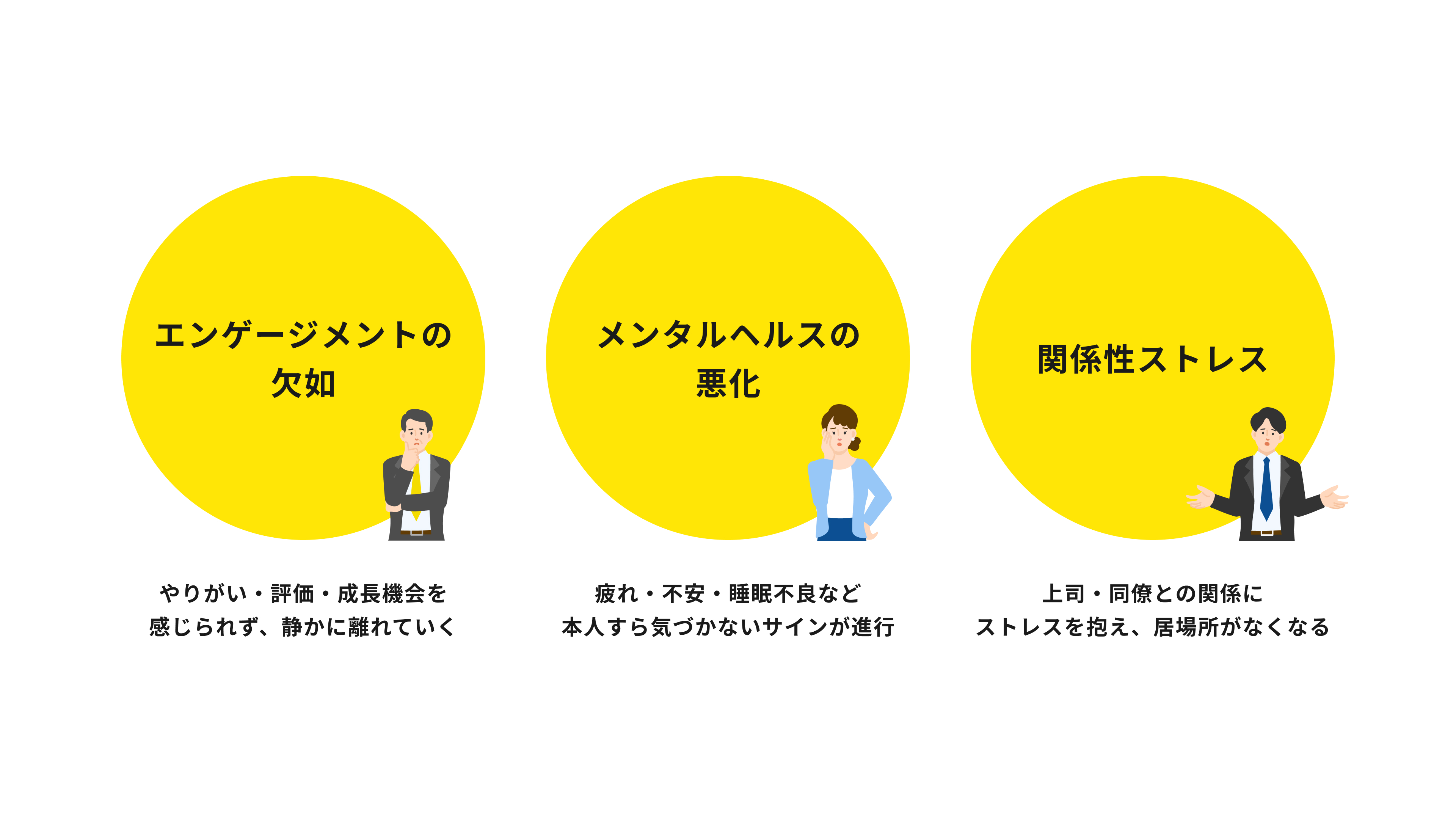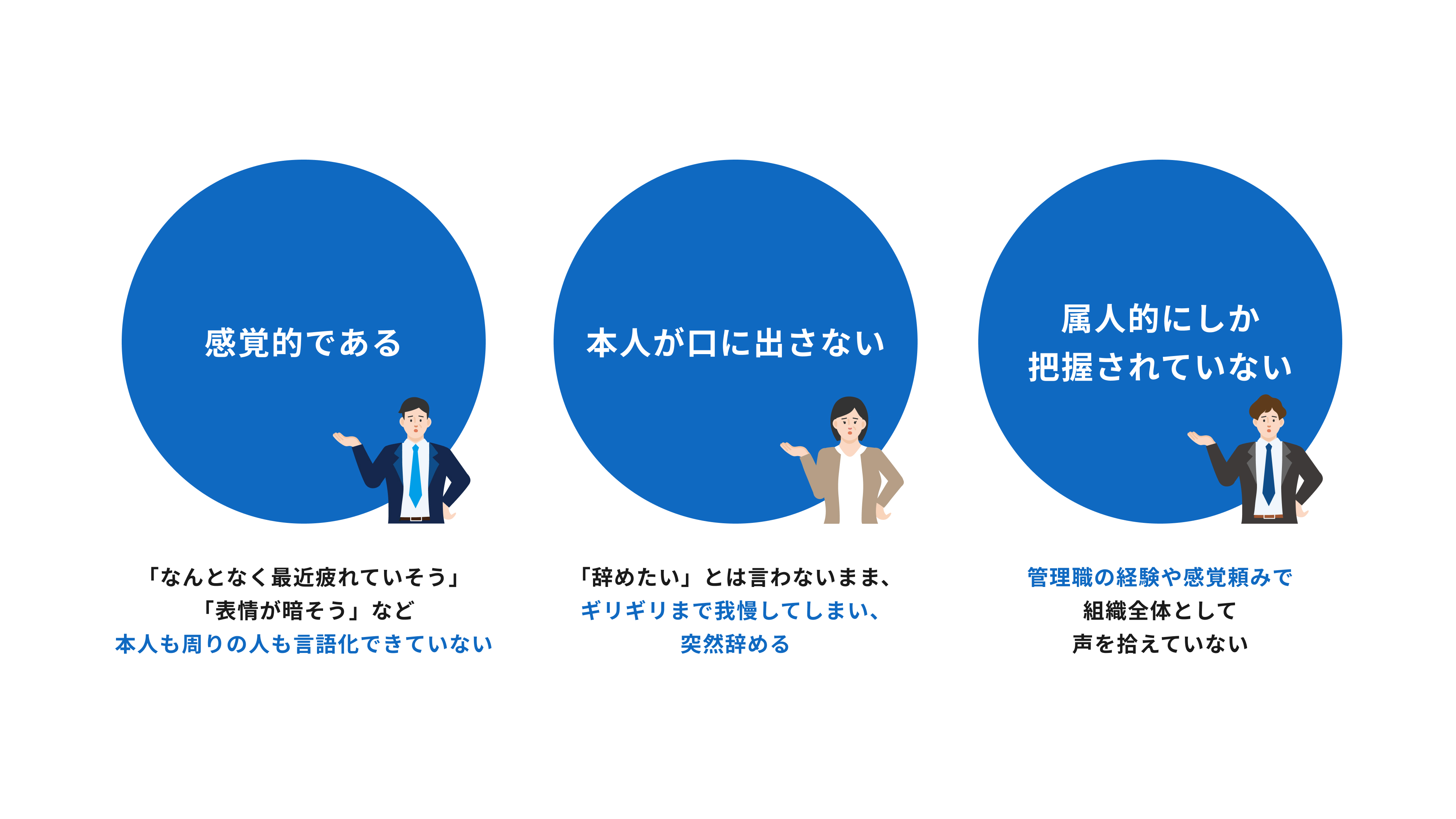 こうした背景から、「個人の不調の兆し(離職のサイン)」を、定点的・構造的に可視化する仕組みの必要性が高まっています。