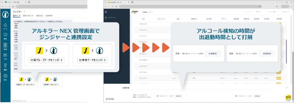 ジンジャー勤怠、アルコールチェックシステムでシェアNo.1※の アルキラーNEXと連携開始 ― アルコールチェックと同時に打刻時間の反映・位置情報の登録を自動化 ドライバーの安全運行と業務効率化を実現 ―