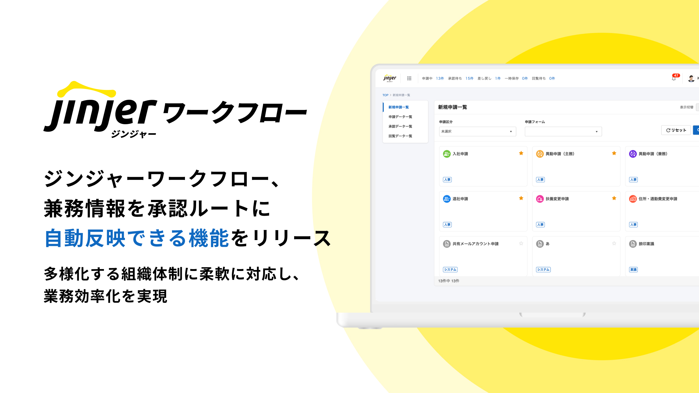 ジンジャーワークフロー、兼務情報を承認ルートに自動反映できる機能をリリース ー多様化する組織体制に柔軟に対応し、業務効率化を実現ー
