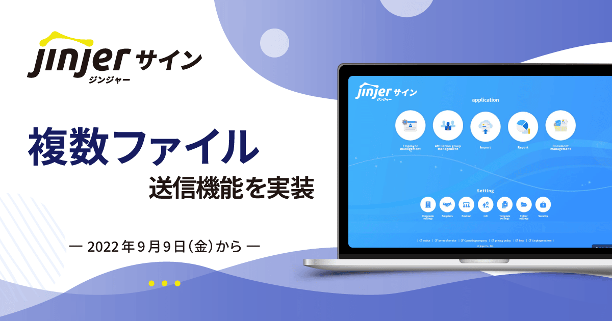 • jinjer株式会社(本社:東京都新宿区、代表取締役CEO:加藤 賢、以下jinjer)が提供する、バックオフィス向けクラウドサービス「ジンジャーサイン」に、契約先に複数ファイルを一度に送信可能な機能を2022年9月9日(金)から実装することをお知らせいたします。