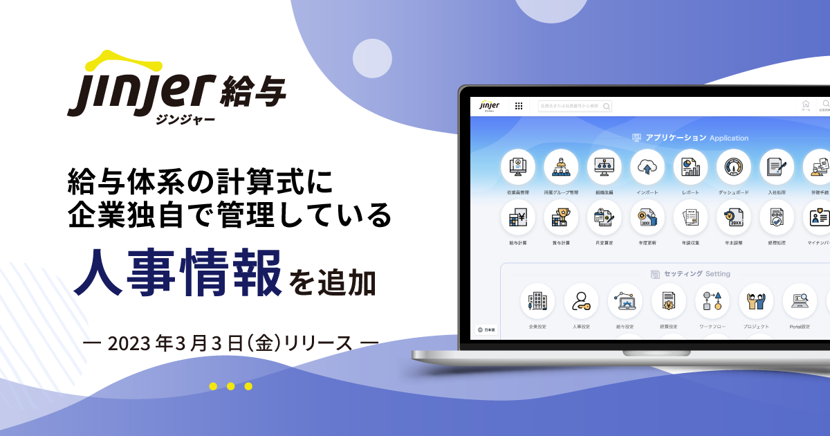 jinjer株式会社(本社:東京都新宿区、代表取締役:桑内 孝志)が提供する、バックオフィス向けクラウドサービス「ジンジャー給与」へ、給与体系の計算式に企業独自で管理している人事情報を追加できる機能を2023年3月3日(金)に実装したことをお知らせします。